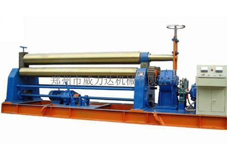 該機(jī)為對(duì)稱式三輥卷板機(jī),兩下輥為主動(dòng)固定輥,上輥通過升降絲桿、渦輪、蝸桿在兩下輥對(duì)稱中央作上下移動(dòng),兩下輥的左、右旋轉(zhuǎn)和上輥的升降移動(dòng)均靠電機(jī)帶動(dòng)減速器來完成,并能借助手動(dòng)離合器把上輥調(diào)節(jié)成平行或傾斜位置,以適應(yīng)卷制圓形和錐形工件的需要,渦輪上下配有特種壓力軸承,轉(zhuǎn)動(dòng)輕松、省電耐磨。該機(jī)集機(jī)身、傳動(dòng)、電器部分為一整體,其結(jié)構(gòu)緊湊、操作方便、便于搬運(yùn)、安裝和維護(hù)。